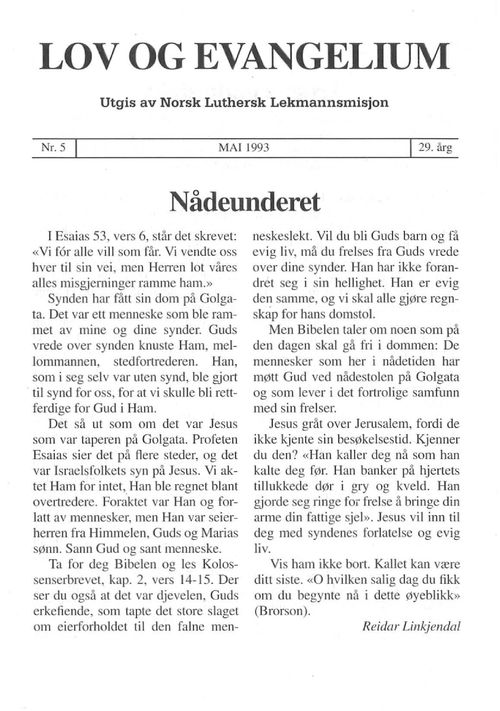 Lov og Evangelium 1993 – Nr 05